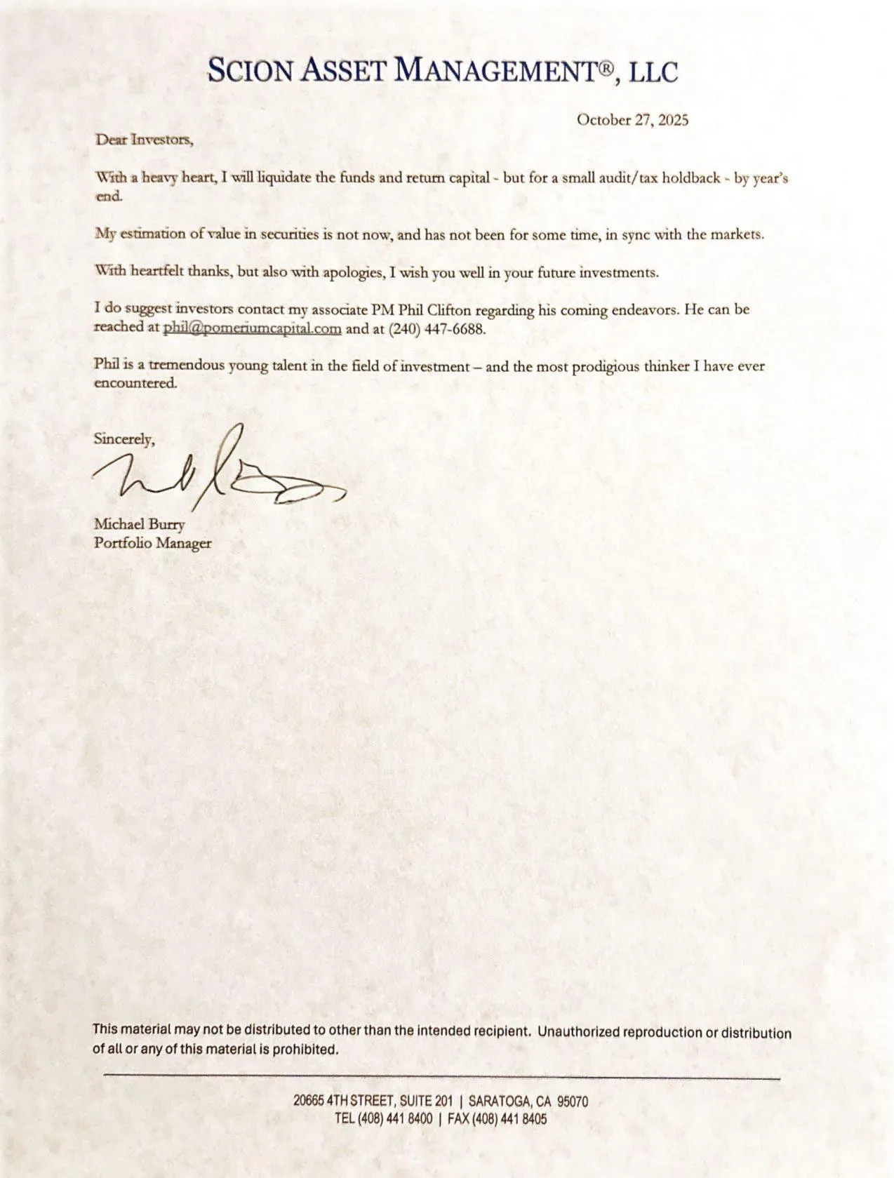 Michael Burry who famously called the great 2008 financial crisis just shut down his hedge fund.