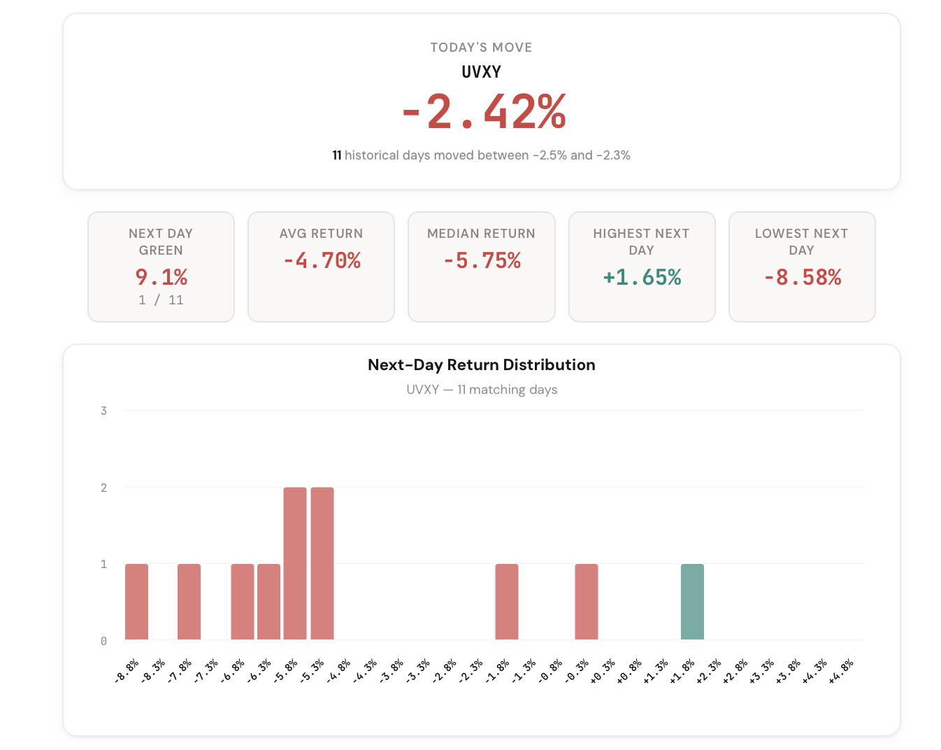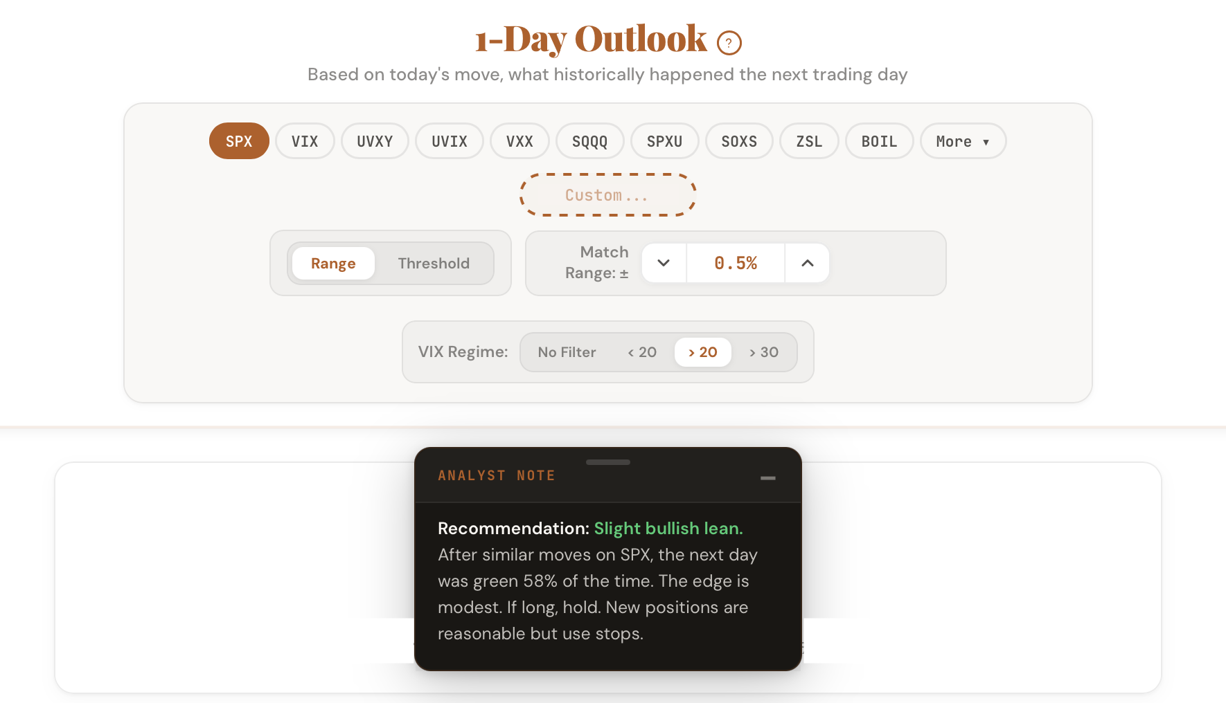 We just launched the 1-Day Outlook tool. Enter any ticker and see what historically happened the next trading day.