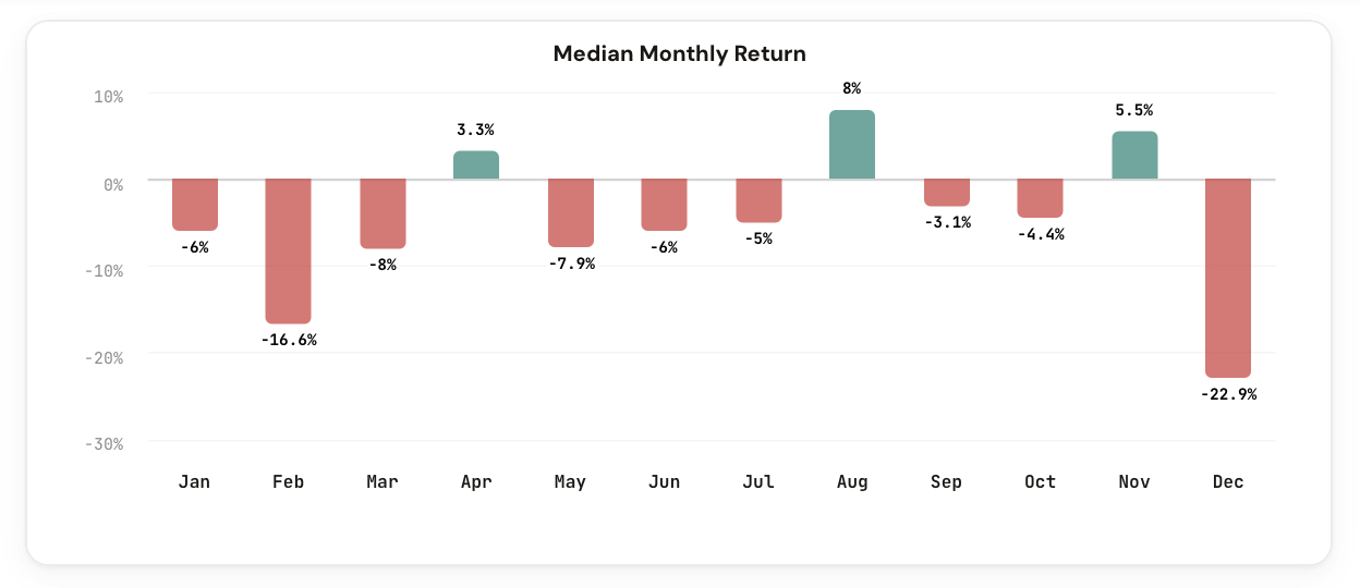 Monthly return patterns and seasonal trends for every volatility product, backed by years of data.