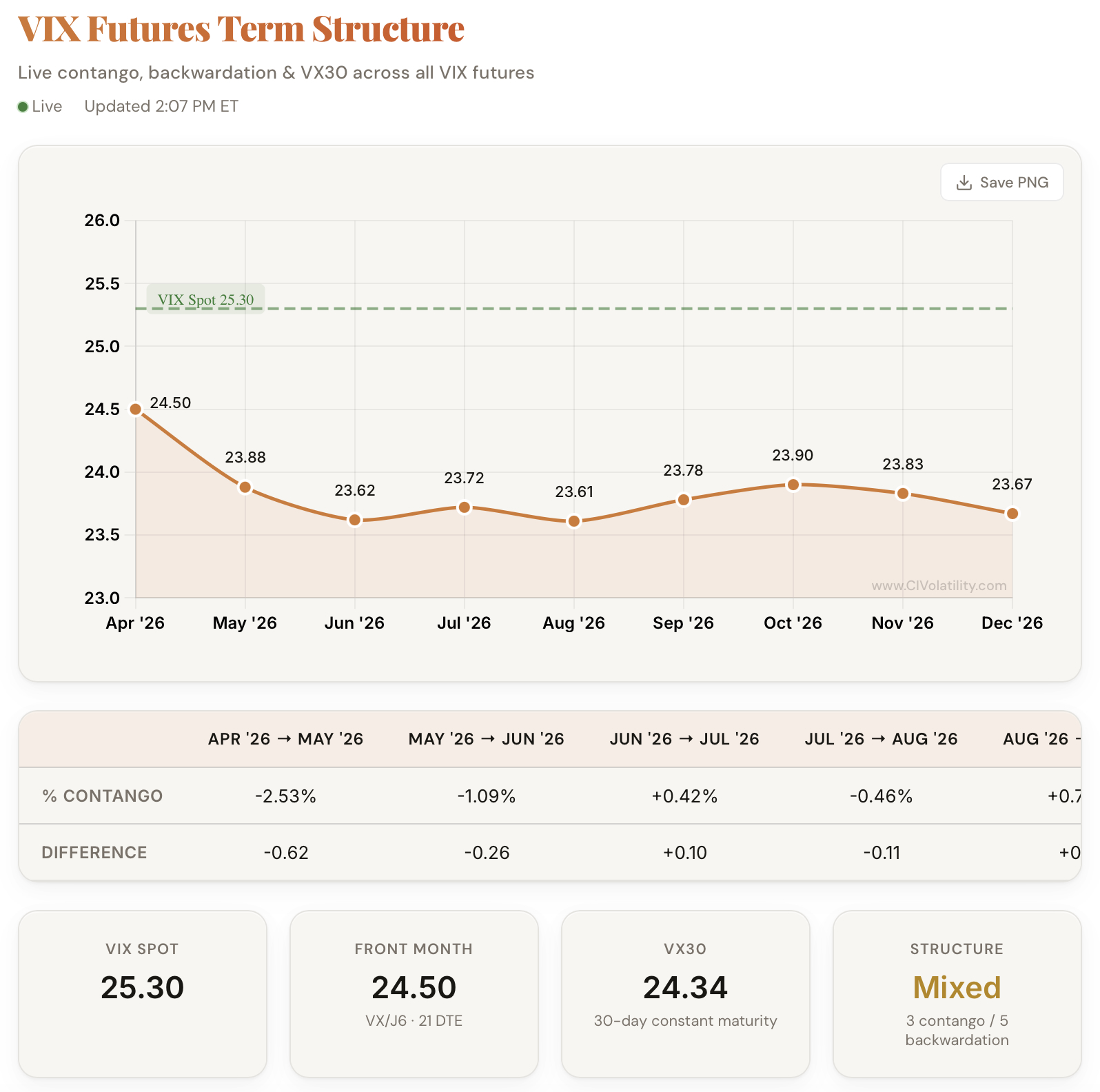 The shape of the VIX futures curve is one of the most important signals in volatility trading. Now you can see it in real time.