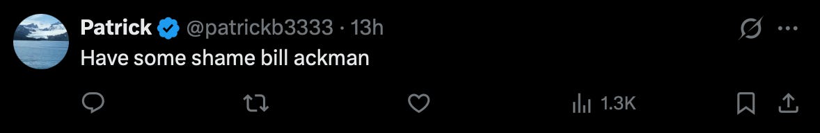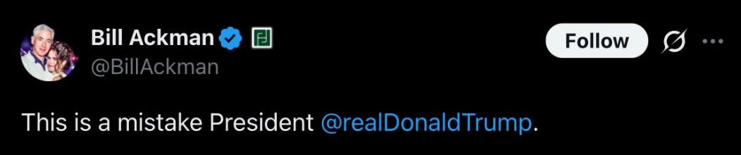 The backlash was swift and brutal enough that Ackman deleted his post.