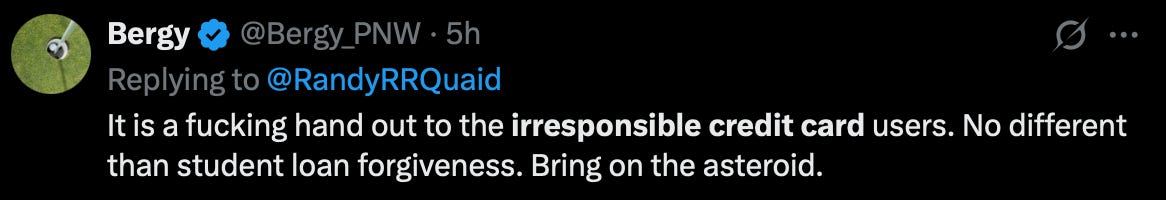 This perspective argues that high interest rates exist precisely because some borrowers are high-risk, and that those who manage credit responsibly shouldn’t subsidize those who don’t. Critics from this camp see the proposal as another form of wealth redistribution or “bailout culture” where people who made poor financial decisions are rescued by government intervention, while disciplined savers and responsible borrowers get nothing or actually lose benefits like rewards programs.