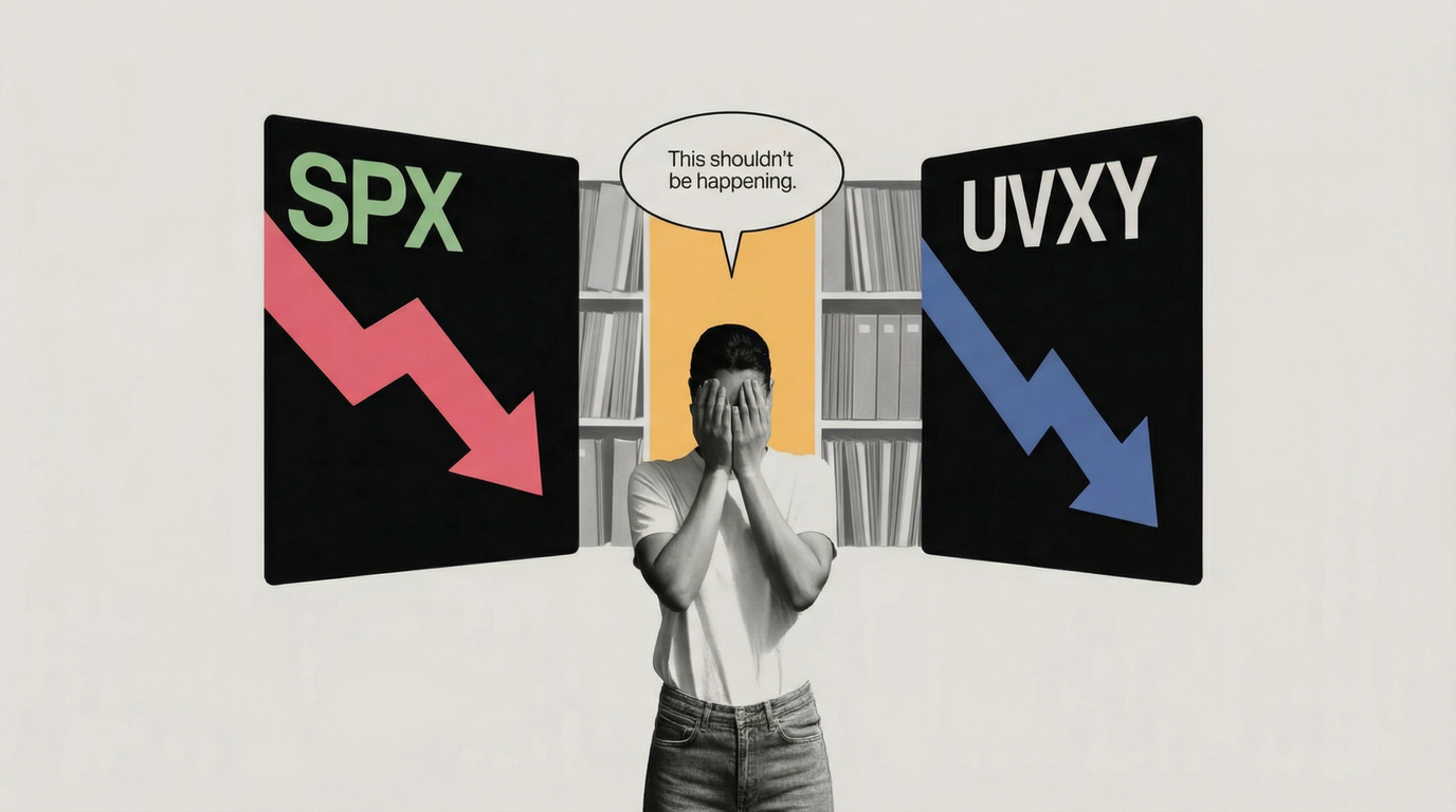 In reality, UVXY doesn’t track the stock market directly. It follows short-term VIX futures, which represent traders’ expectations of volatility 30 days ahead, not the volatility happening today.