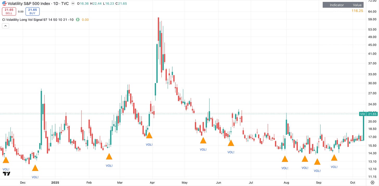 This signal tends to successfully predict over 90% of major volatility spikes.
