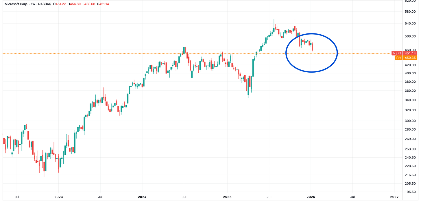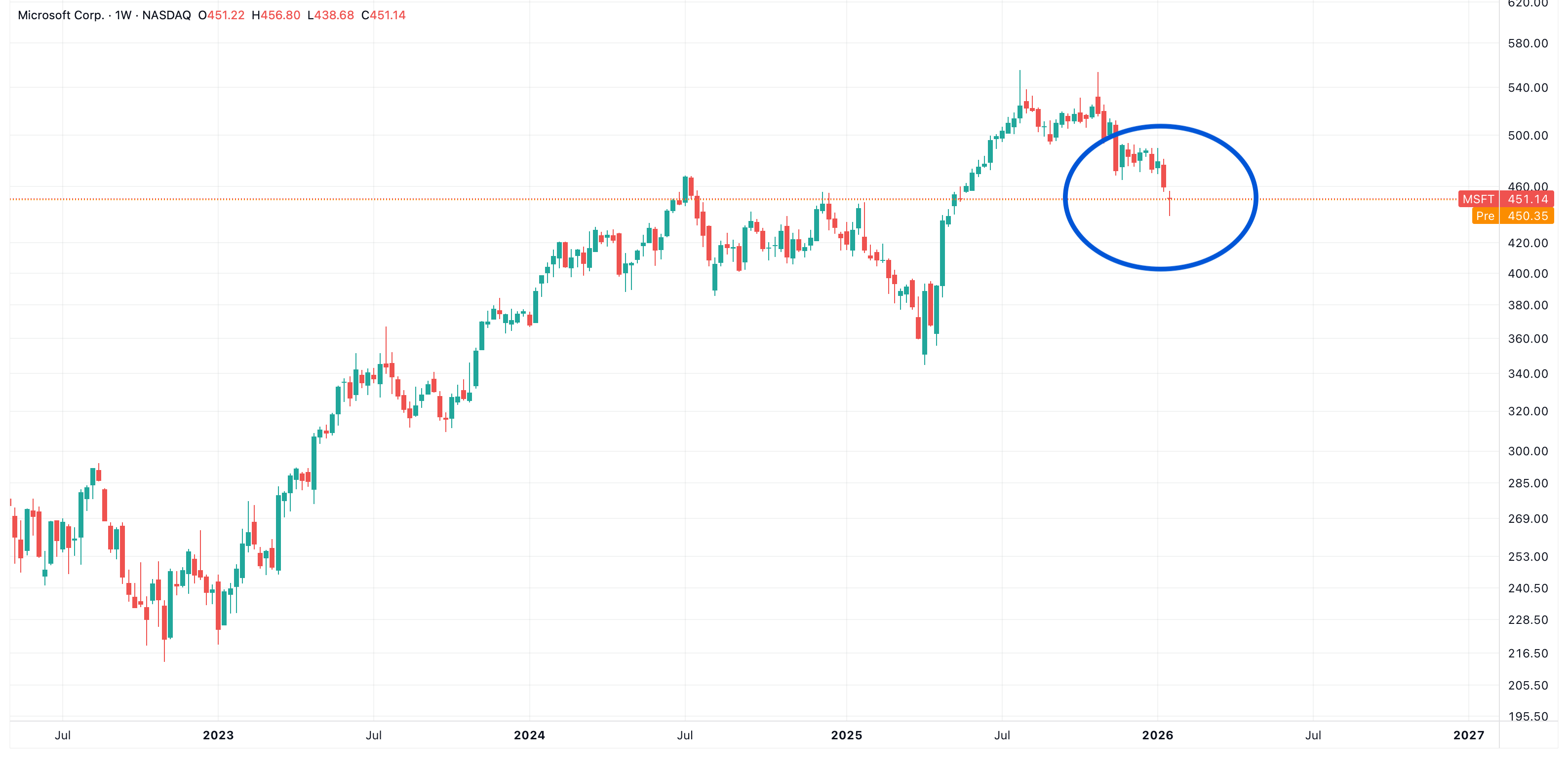 Historically, MSFT has delivered average annual returns of around 26% over the past decade, making the past couple of years feel particularly disappointing for long-term holders.