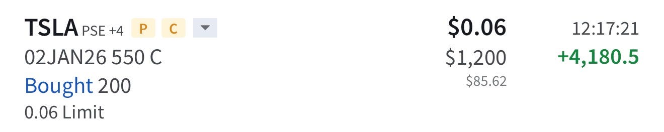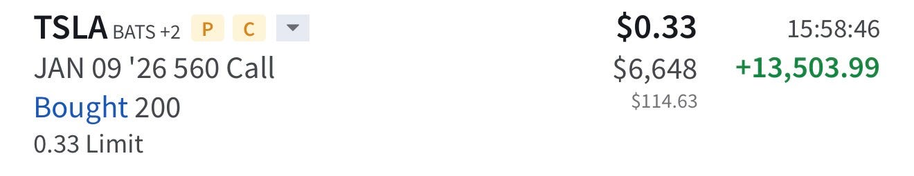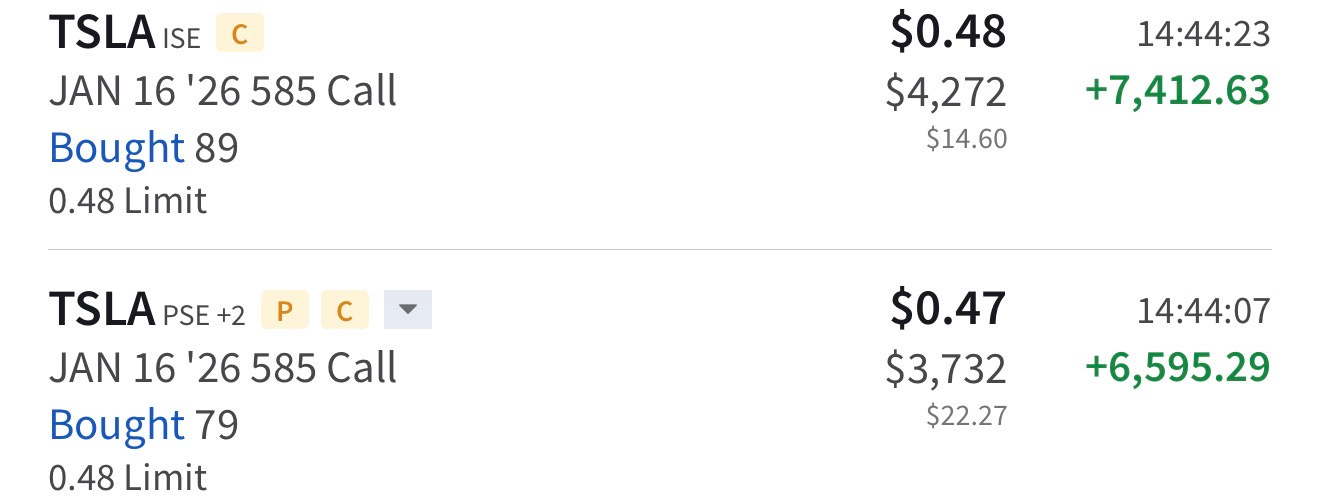 Between December 26 and 30, 2025, we noticed TSLA dropped below its 10-day moving average despite strength in the broader market, so we did entered a high probability short. Our short positions in TSLA generated profits exceeding $55,000. We posted our observations in the member area in real time.