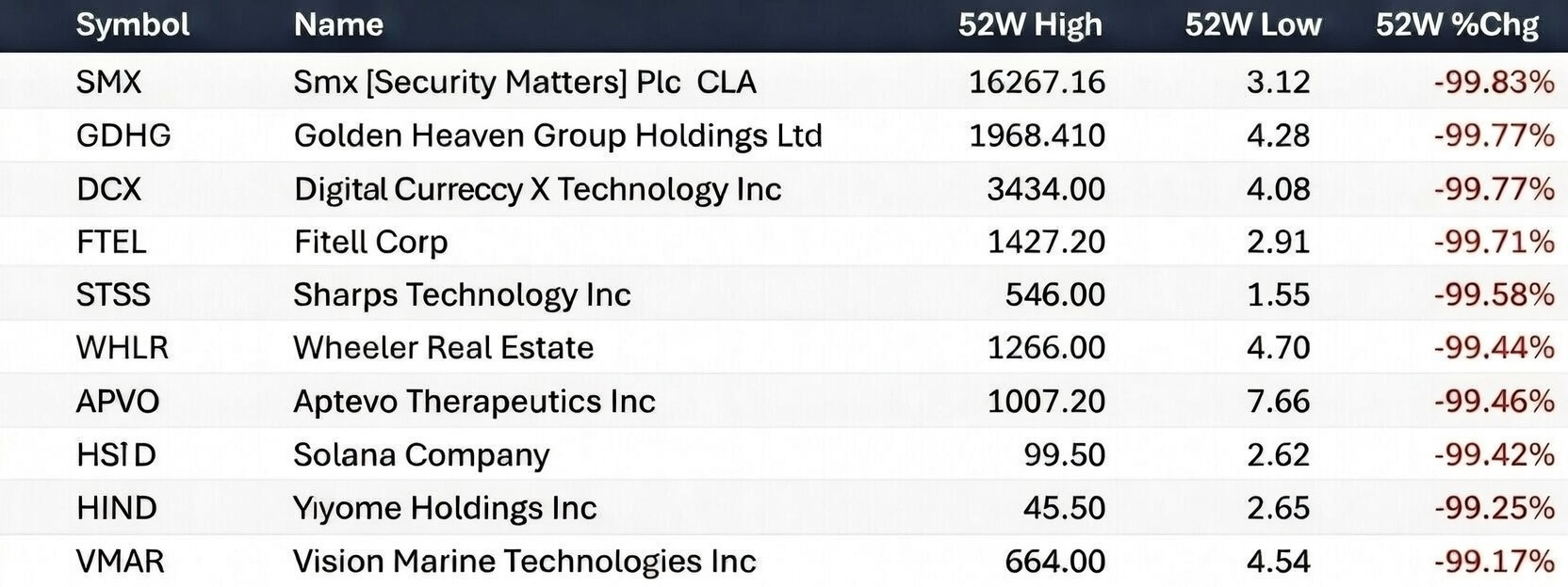 Stocks that plummet 99% or more in a single year, often microcaps, typically suffer from these issues: