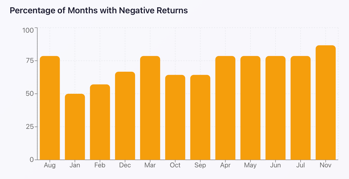 Percentage of month’s with negative returns