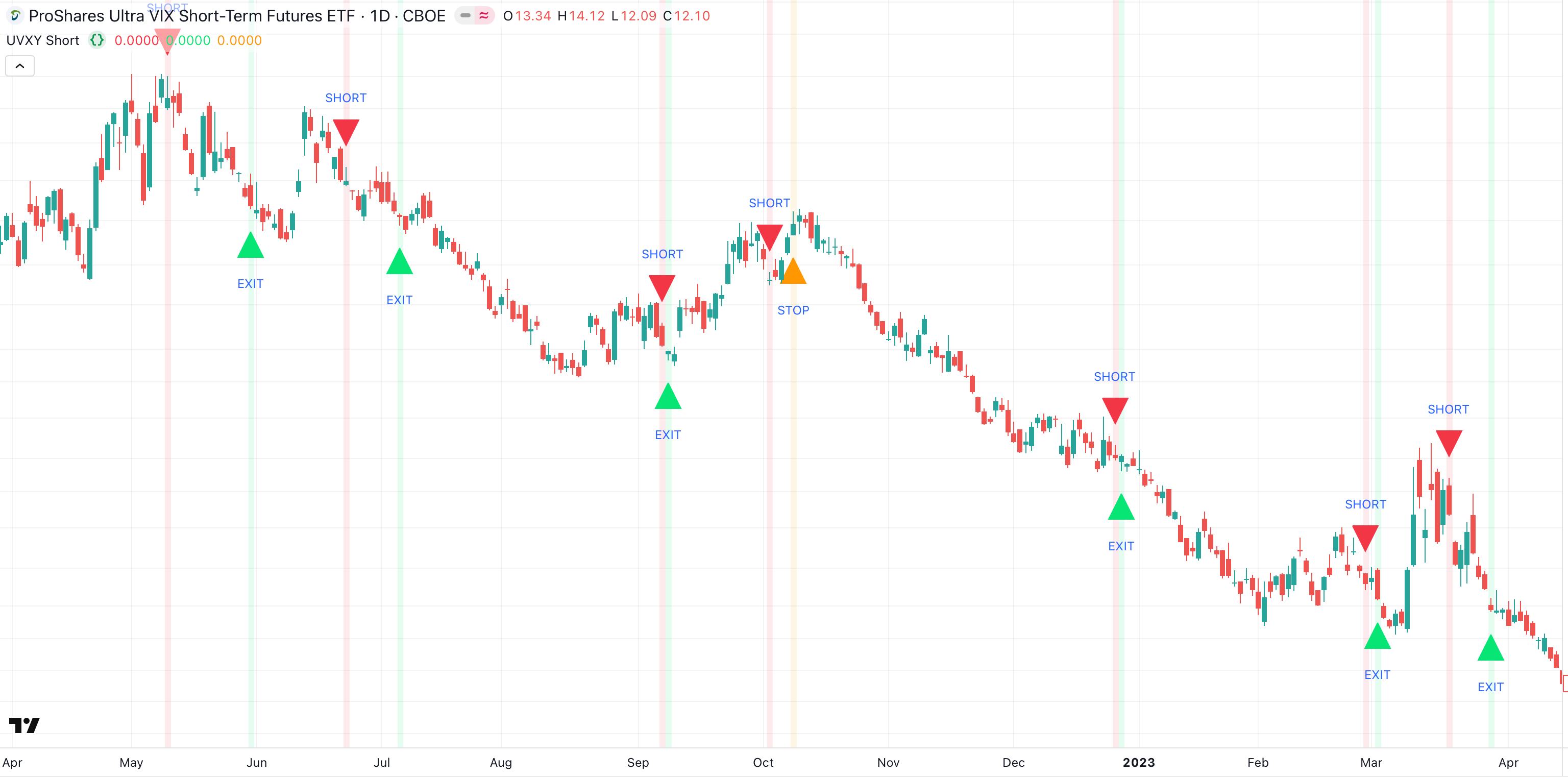 Short UVXY directly once the signal confirms a top and exit the trade once the signal confirms to exit.