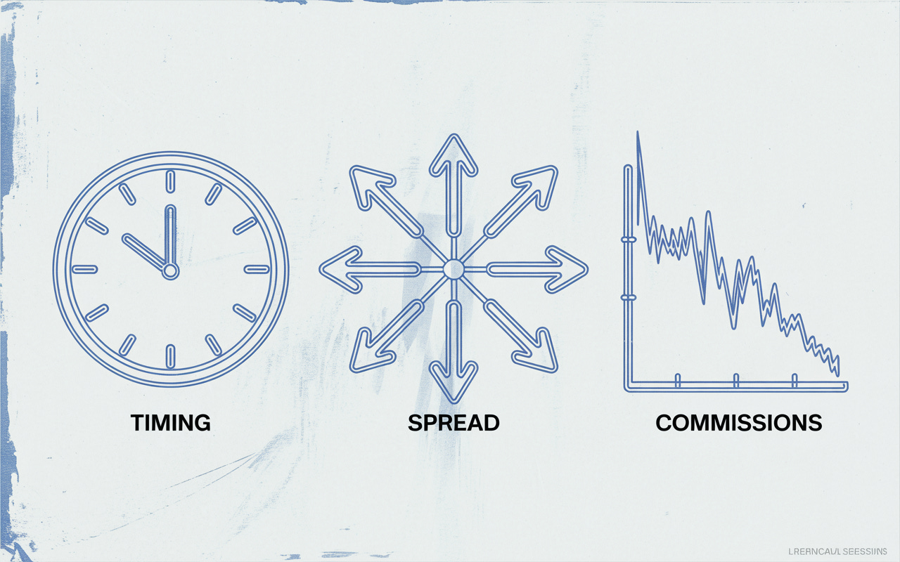 The spread and commission shows up as red P&L before the trade even has a chance.